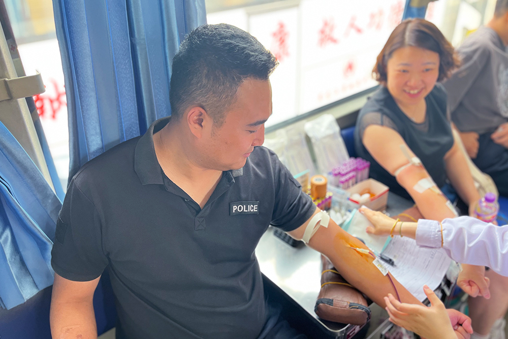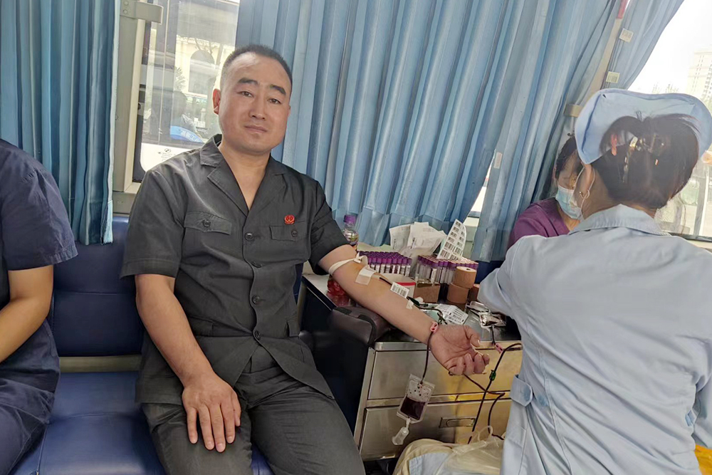 7月25日上午,参与献血的21名党员干警来到无偿献血活动现场,其中既有连续多年奉献热血的“标兵”,也有初次献血的“新人”。他们在炎炎烈日下,怀着赤城的奉献之心,有序填写登记表、量血压、抽血化验,在检测达标后,毫不犹豫伸出手臂,为需要救助的人民群众献出自己的一份爱心,送去一份救助的希望。参与献血的党员干警纷纷表示,无偿献血是善意之举,也是光荣之举,为人民群众尽心出力,是法院人的至高荣誉。