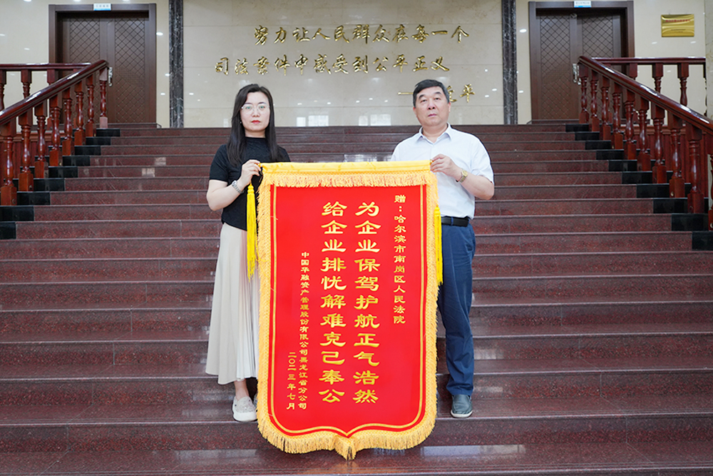 会后,金融企业代表向南岗区法院高质量护航经济发展、为企业提供优质高效的司法服务表示了诚挚感谢,并向主审法官杨丽欣送上锦旗表达敬意。