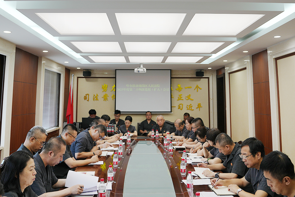 8月8日,南岗区法院召开党组(扩大)会议传达学习贯彻全省高级法官研讨班精神。会议聚焦“公正与效率”主题,围绕奋力推进审判工作现代化,从审判理念、审判机制、审判体系、审判管理四个方面对下一步工作进行了全面部署,并重点研究了能动司法和诉源治理工作。党组书记、院长常鹤主持会议,院领导、各部门负责人参加会议。