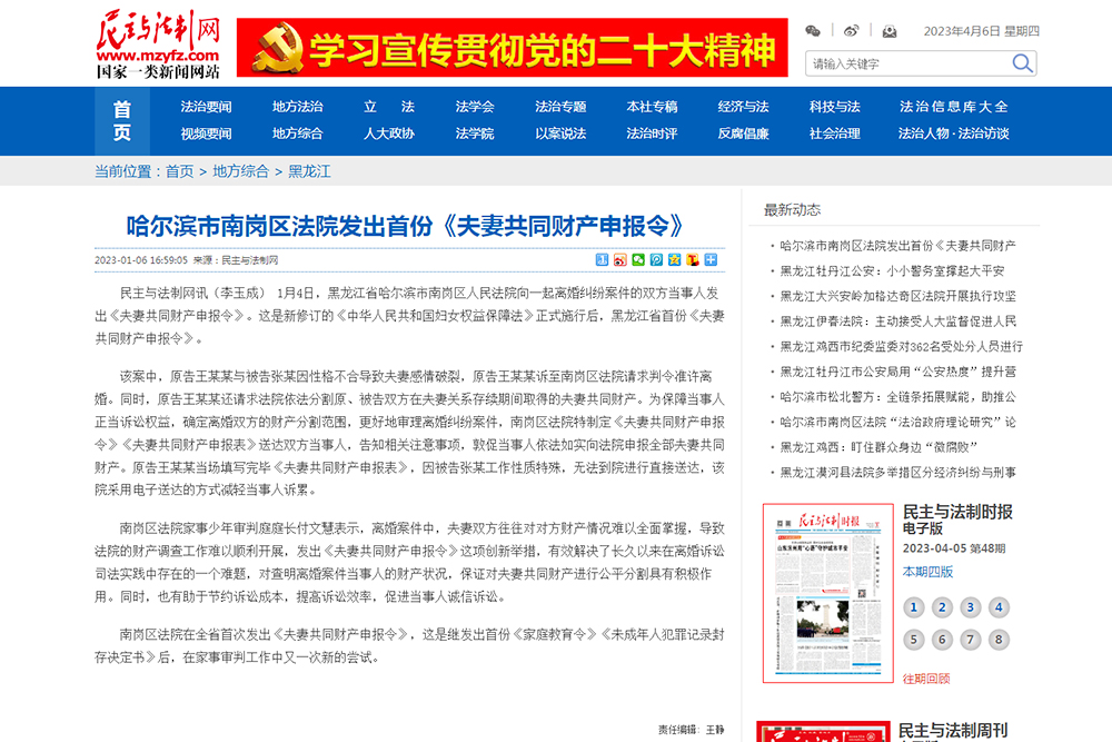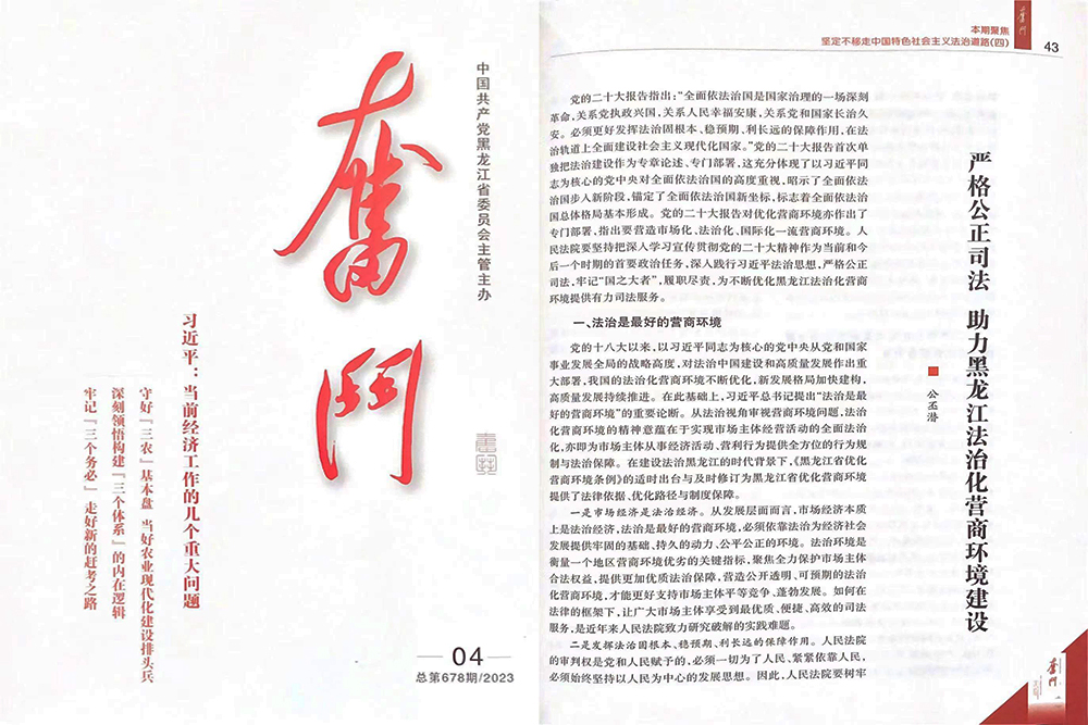 2023年上半年,组织党组理论学习中心组开展“第一议题”专题学习13次,撰写研讨文章78篇;组织全院各支部集中学习研讨6次,撰写研讨文章96篇;组织青年理论学习小组开展专题研讨6次,撰写研讨文章90篇。共有2篇文章在“龙江法治论坛”暨学习宣传贯彻党的二十大精神征文活动中获奖,1名干警荣获“宣讲党的二十大精神精品课程”最佳阐释奖。审判管理办公室(研究室)主任公丕潜撰写的理论文章《严格公正司法 助力黑龙江法治化营商环境建设》被黑龙江省委主办的《奋斗》杂志刊载。