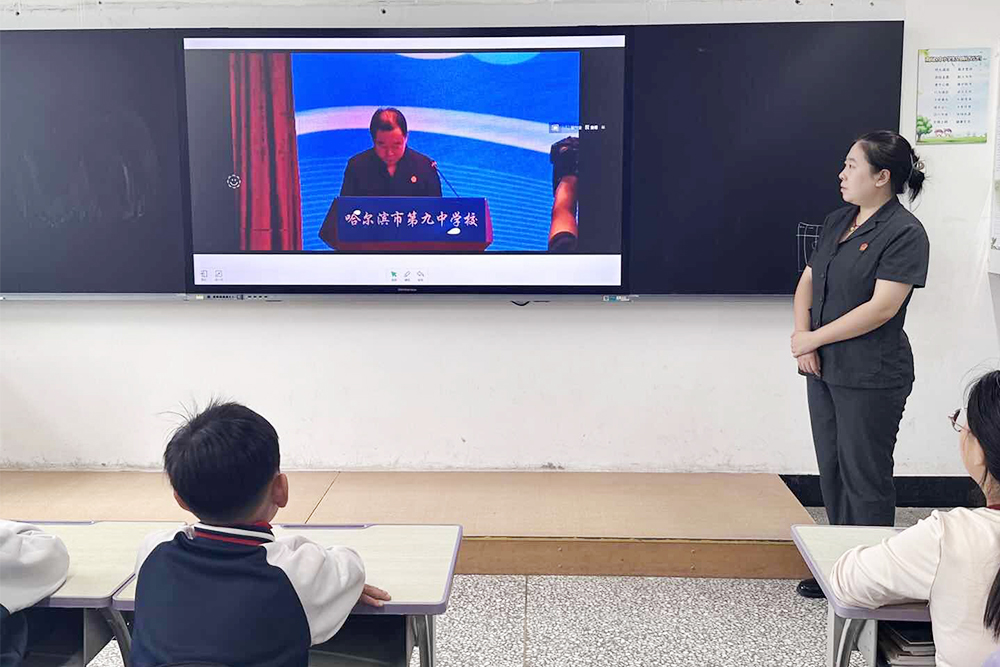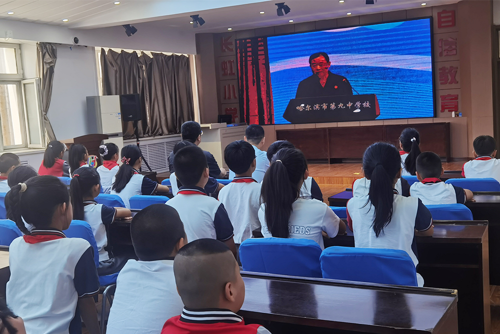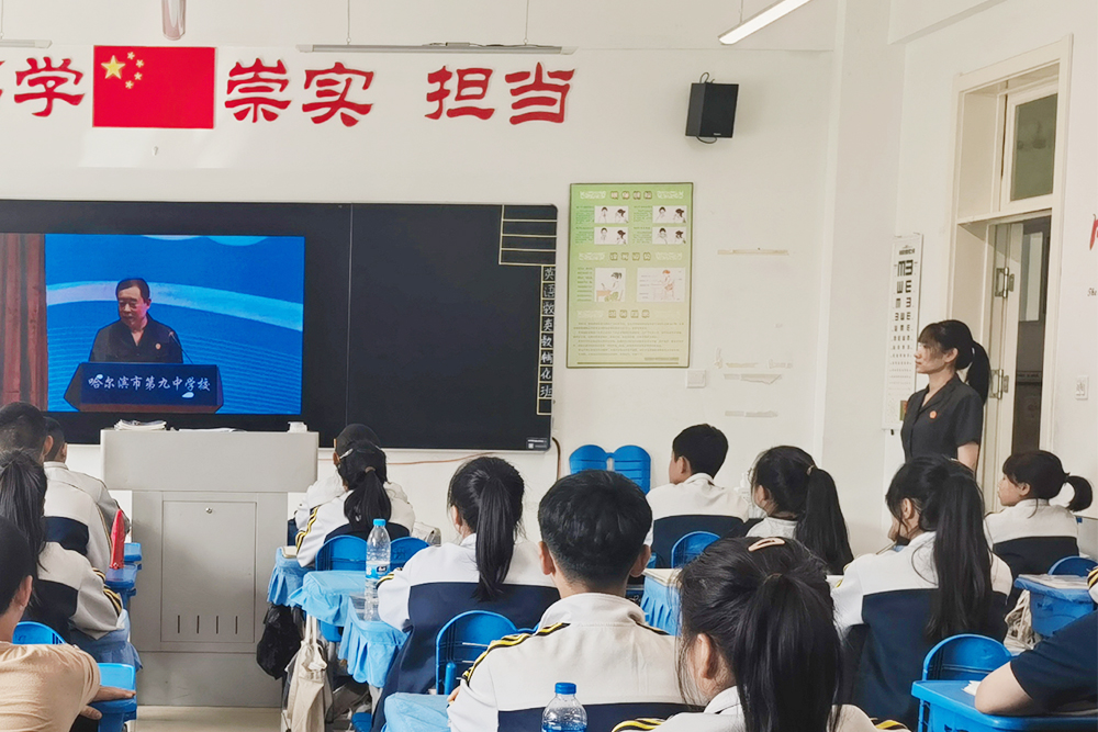 9月1日上午,中华人民共和国二级大法官,黑龙江省高级人民法院党组书记、院长党广锁被聘任为哈尔滨市第九中学法治副校长,同时为全省中小学生线上集体授课。南岗区人民法院组织法治副校长前往学校与师生共同观看党广锁院长授课。