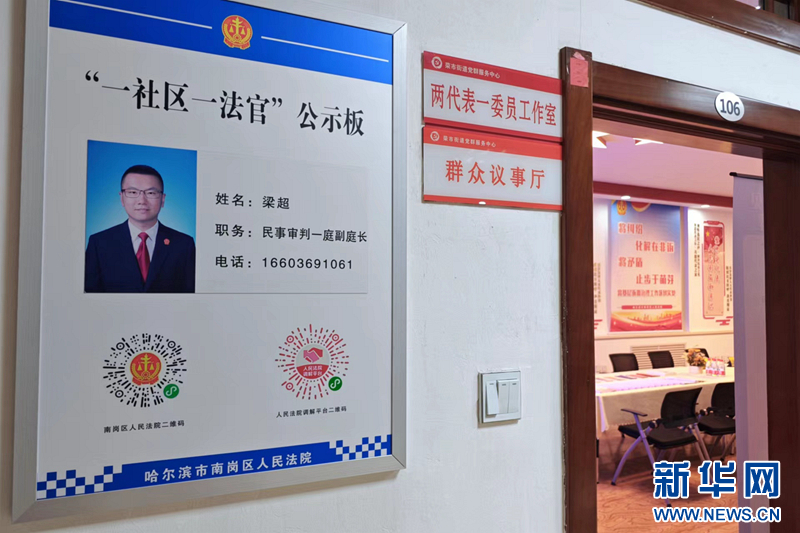 哈尔滨市南岗区人民法院“一社区一法官”公示板。新华网才萌摄