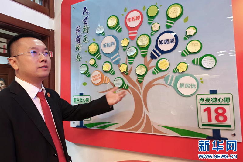 荣市街道龙泰社区“法官工作室”群众微心愿留言板。新华网才萌摄
