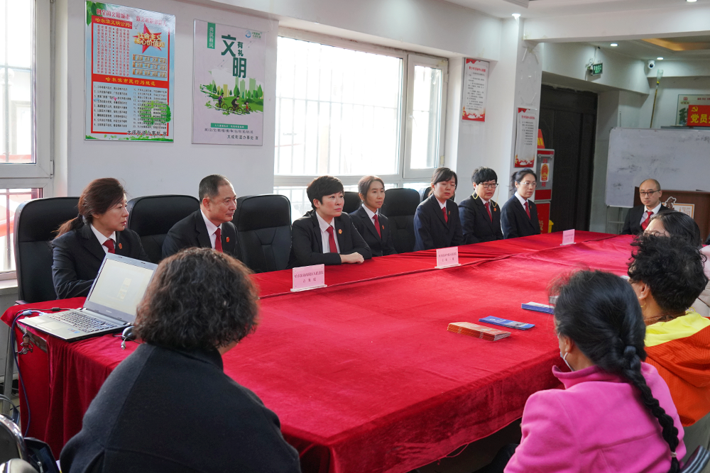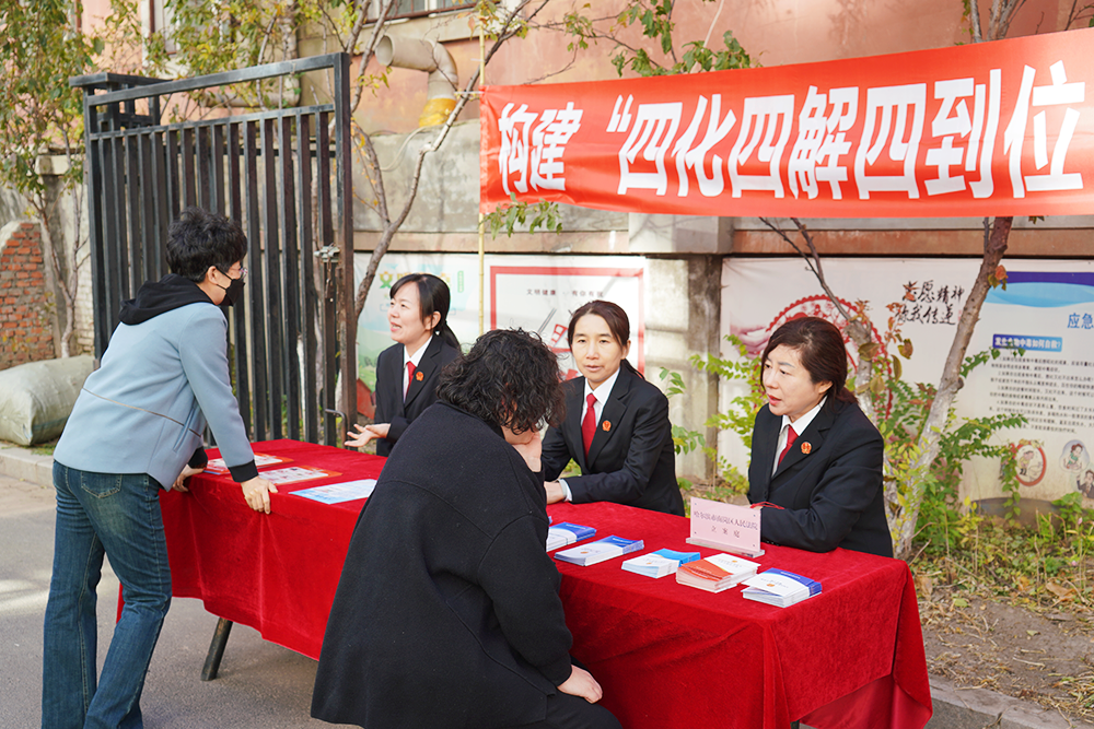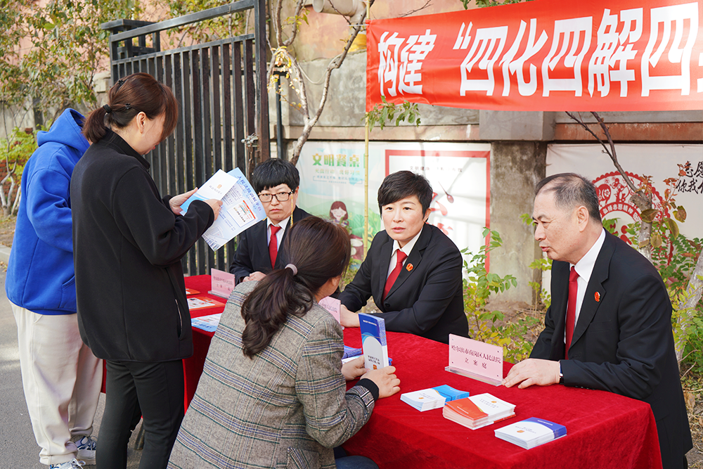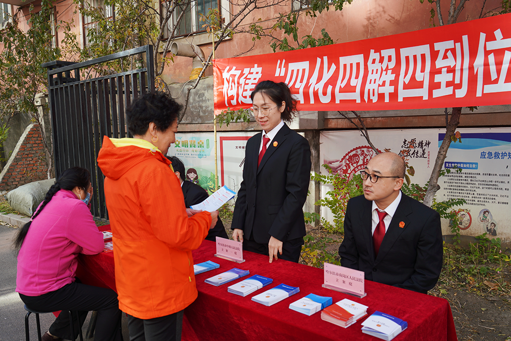 为坚持和发展新时代“枫桥经验”,及时把矛盾纠纷化解在基层、化解在萌芽状态,近日,南岗区人民法院立案庭联合哈尔滨市中级人民法院立案一庭、立案二庭组成普法宣传队,走进南岗区大成街道建工社区,通过召开座谈会、发放宣传单等活动,向社区群众宣传多元解纷,并释法答疑。