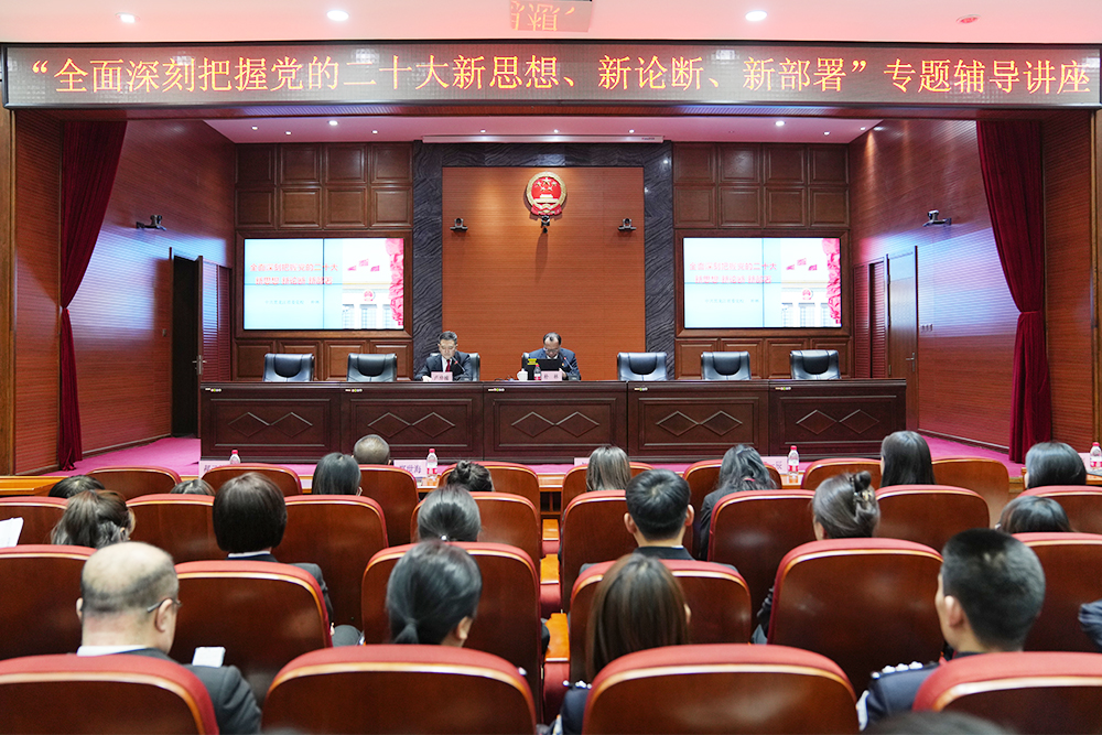 为进一步引导干警牢记初心使命、感悟思想伟力,切实用党的创新思想武装头脑、指导实践、推动工作,11月27日,南岗区人民法院邀请著名党建理论专家、中共黑龙江省委党校党建教研部主任朴林教授以“全面深刻把握党的二十大新思想、新论断、新部署”为题为全院干警作专题辅导。讲座由党组副书记、副院长卢仲楠主持。