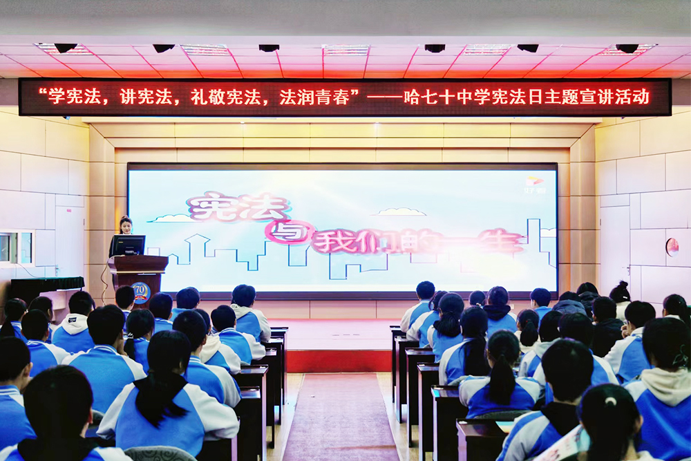 家事少年审判庭法官助理贲琪、李棕璞走进哈尔滨市第七十中学校,围绕“宪法的基本内容以及重要地位、宪法的实施路径”等方面开展授课,引导同学们认真学习宪法和法律知识,增强宪法观念,勇做宪法的崇尚者、遵守者和维护者。