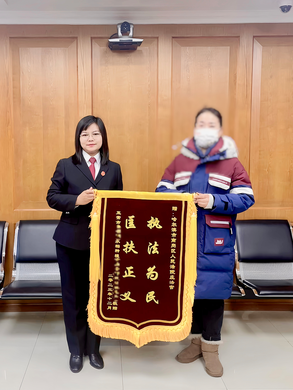 “庄法官,谢谢您,摊上知识产权官司,我们真不知道怎么办才好……”近日,五常市某水稻专业合作社农户代表姜某将一面“匡扶正义 执法为民”的锦旗送到南岗区人民法院综合审判庭副庭长庄静手中,对法院公正司法、维护群众合法权益给予高度赞赏。