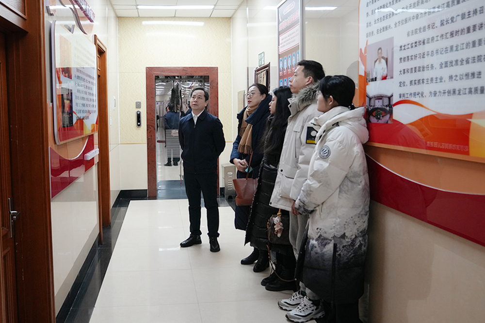 为全面贯彻中共中央办公厅、国务院办公厅印发《关于加强新时代法学教育和法学理论研究的意见》中关于持续培养大批德才兼备的高素质法治人才的要求,切实推动构建法学教育新格局,繁荣法学理论研究。1月14日,黑龙江大学法学院党委书记孙世萍一行莅临南岗区人民法院调研指导诉源治理、“学习型机关”建设等工作。南岗区人民法院党组书记、院长常鹤,审判管理办公室(研究室)主任公丕潜陪同调研。