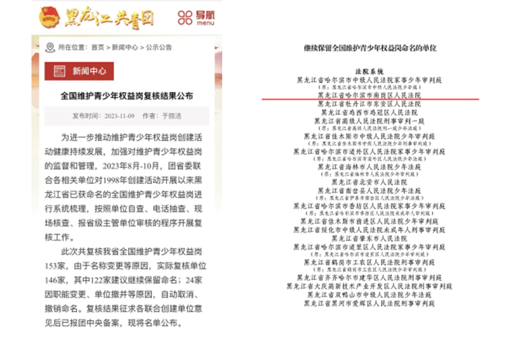 廿载磨一剑,砺得梅花香。2000年,南岗区人民法院获得全国法院系统优秀“青少年维权岗”命名。23年间,南岗区人民法院始终将维护未成年人合法权益作为工作重点,扎实推进未成年人保护工作。2023年,南岗区人民法院通过全国维护青少年权益岗复核,保留命名。