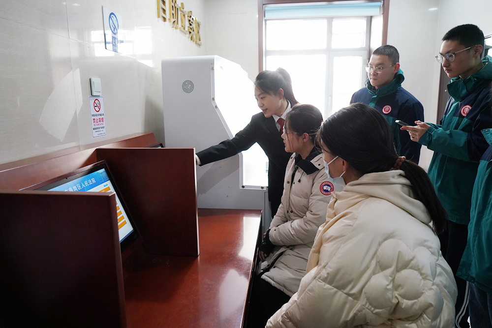 在自助立案区,智能导诉机和自助立案一体机让“小学霸们”大开眼界,亲自体验了诉讼指引、法律法规查询、文书样式书写、诉讼费用计算等服务功能。