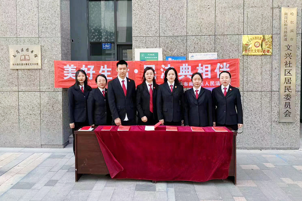 近日,哈尔滨市南岗区人民法院哈西法庭走进和兴路街道文兴社区,开展“民法典进社区”普法宣传活动。