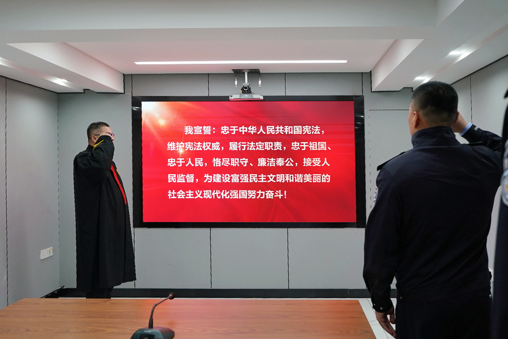 “我宣誓:忠于中华人民共和国宪法,维护宪法权威,履行法定职责······”全体派出所干警肃立注目,在领誓人公丕潜的带领下,右手举拳,齐声跟诵,铿锵有力的誓言响彻全场。充分彰显宪法具有最高的法律地位、法律权威、法律效力,强化国家工作人员宪法意识、宪法信仰和宪法观念。