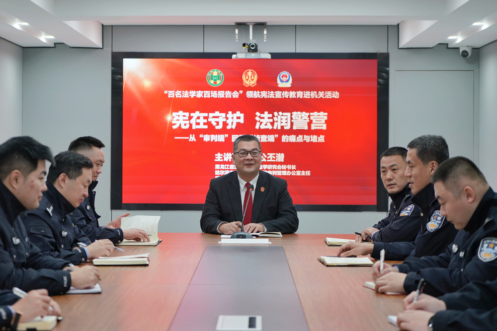 为深入贯彻落实党的二十届四中全会精神,弘扬宪法精神,增强宪法意识,践行“学习宣传贯彻习近平法治思想,推动宪法深入人心”宪法宣传周主题,12月3日,哈尔滨市南岗区人民法院审判管理办公室(研究室)主任公丕潜走进哈尔滨大街派出所,开展“宪在守护,法润警营”专题交流。