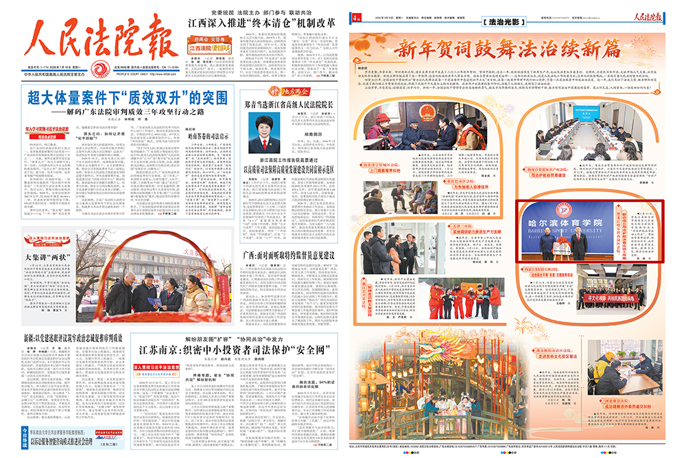 1月13日,黑龙江省哈尔滨市南岗区人民法院与哈尔滨体育学院联合成立“司法护航冰雪运动工作室”,围绕冰雪赛事运营、场馆综合利用、冰雪旅游开发等重点领域,提供专业化、精准化的法律支持。