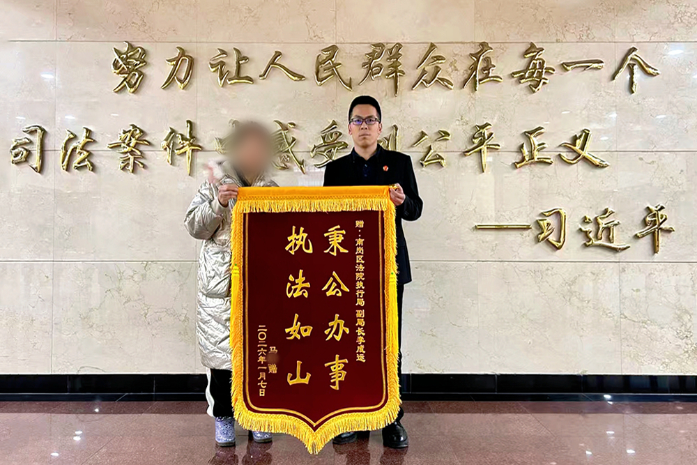 “执法如山扶正义,为民解忧暖人心”——在一起科技服务合同退款执行案中,执行法官刘海涛在零下二十多度的严寒中,三次前往被执行人公司蹲守。案件陷入僵局时,刘海涛法官加大查人找物力度,锁定查控范围,敏锐发现并查封被执行人车辆,最终与申请人合力找到关键当事人,并耐心沟通促成双方和解。申请执行人专程送来锦旗和感谢信,称法官的执着让他们“在寒冬中看到了正义的希望”。这面锦旗,映照出执行干警不畏艰难、智慧攻坚的毅力和温度。