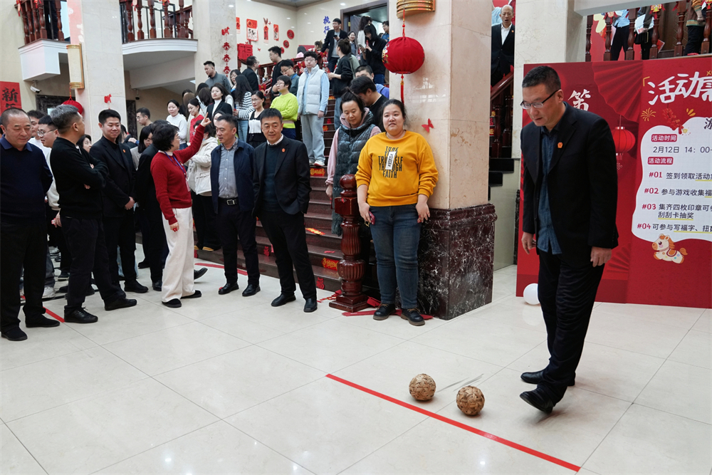 活动现场张灯结彩,年味浓厚,热闹非凡。