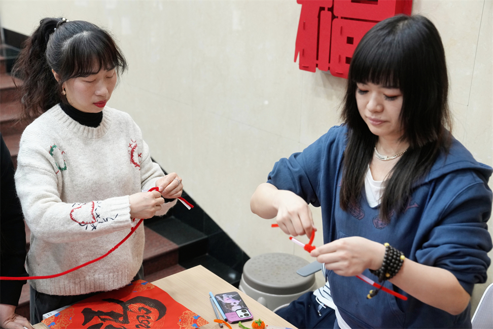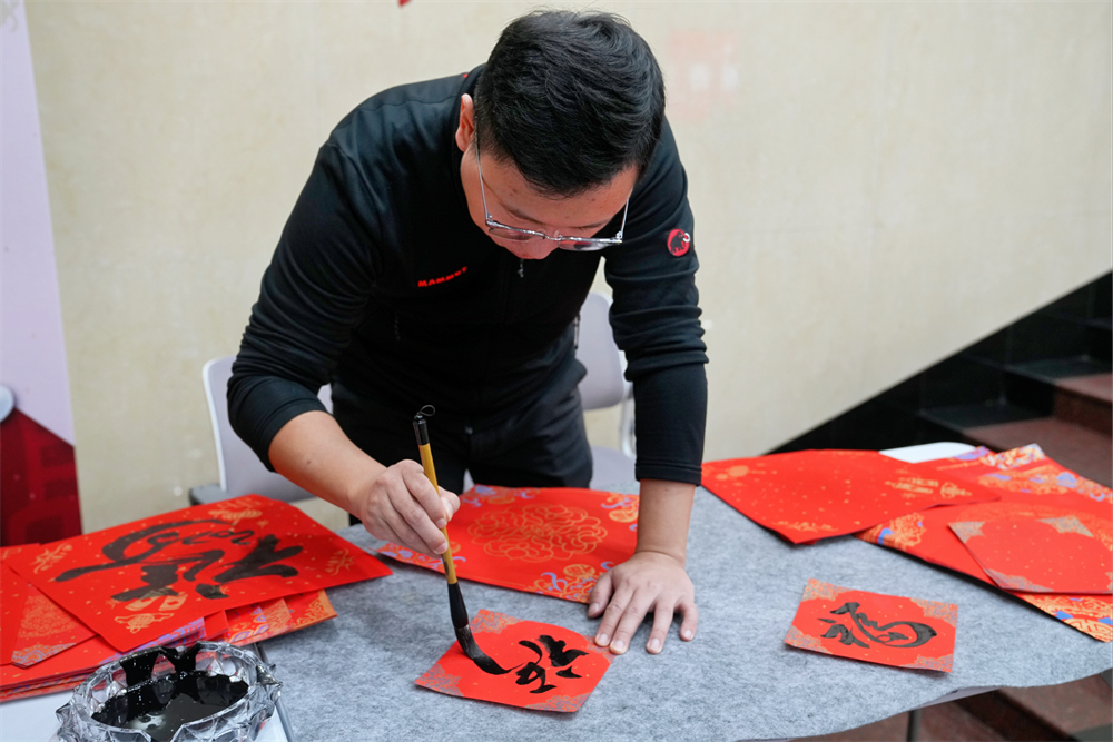 手工制作区,善作书法的干警们挥毫泼墨,书写福字和新年寄语,墨香四溢间,新春美好期许跃然纸上。