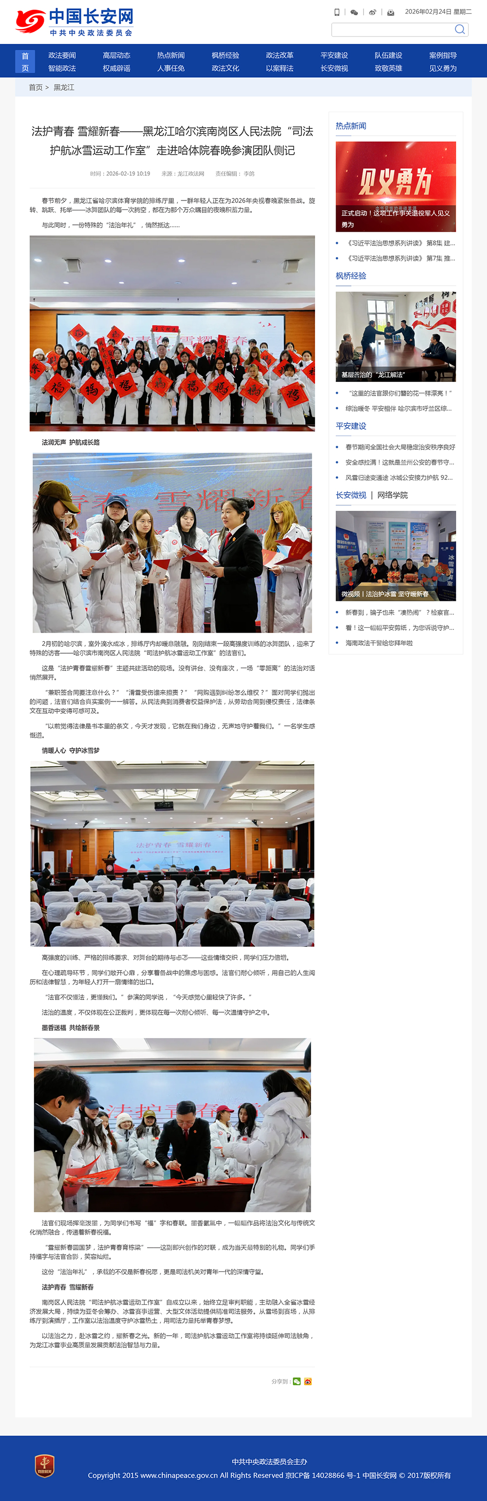 中国长安网宣传报道:南岗区人民法院“司法护航冰雪运动工作室”走进哈体院春晚参演团队侧记
