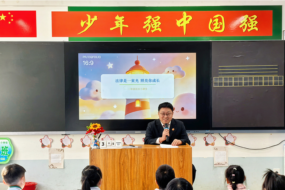 “法律不仅关乎是非对错,更关乎我们如何成为更好的自己。”哈尔滨市奋斗小学校的课堂上,综合审判庭赵聪法官以“奋斗与成长”为切入点,为同学们带来了一堂走进“法”走近法治的“开学第一课”。他用生动的语言、贴近生活的案例,告诉同学们在网络世界里如何辨别信息、保护隐私、避免沉迷。课堂上,同学们积极回答问题,气氛热烈,法治的种子在思考与交流中生根发芽。