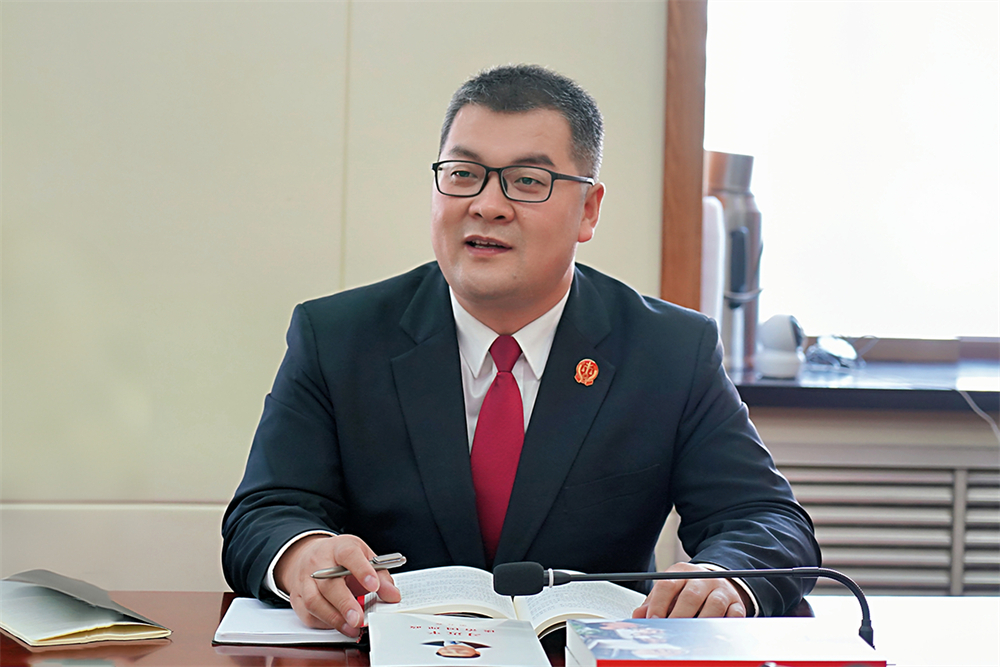 审判管理办公室(研究室)主任公丕潜结合《习近平谈治国理政》第五卷的研读体会分享道:书中有一句让我印象极深——“我们要站稳人民立场、把握人民愿望、尊重人民创造、集中人民智慧”。这不只是一句誓言,更是我们衡量一切工作的准绳。树立正确政绩观,就要像书中要求的那样,不计较个人得失,要有“功成不必在我,功成必定有我”的觉悟。他建议青年干警反复研读《习近平谈治国理政》系列丛书,从“我将无我、不负人民”的赤子情怀中读懂什么是真正的政绩,把书中“真干才能真出业绩、出真业绩”的教诲牢记心间,在平凡岗位上交出不负时代、不负人民的答卷。