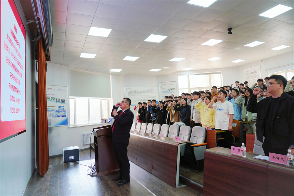 在公丕潜主任的领誓下,全体师生肃然起立,高举右拳,庄严宣誓:“国家安全,人人有责!国之安全,由我守护!”铿锵誓言回荡在礼堂之中,将整场活动的氛围推向高潮。讲座结束后,一名学生深有感触地说:“原来国家安全离我们这么近,原来法治思维真的能‘救命’。”